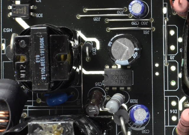 Cả 2 tầng PFC và PWM được điều khiển bới IC dao động champion CM6800UX kế bên là IC disconnect CM03X có nhiệm vụ ngắt kết nối khối điền khiển tầng PFC khi PSU đang ở trạng thái nghỉ giúp giảm hao phí và thỏa 1 số tiêu chuẩn châu âu như EuP lot 6 2013