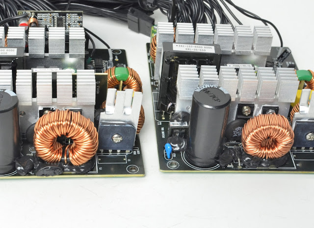 Tầng PFC của Phiên bản 550W sử dụng 1 cặp Mosfet SI-trend SI20N50F(20A), còn ở phiên bản 650W là 1 cặp Mosfet có công suất lớn hơn Wayon WML28N55C4(28A). Chúng ta có thể thấy kích thước cuộn cảm của mạch PFC của bản 650W to hơn khá nhiều so với bản 550W